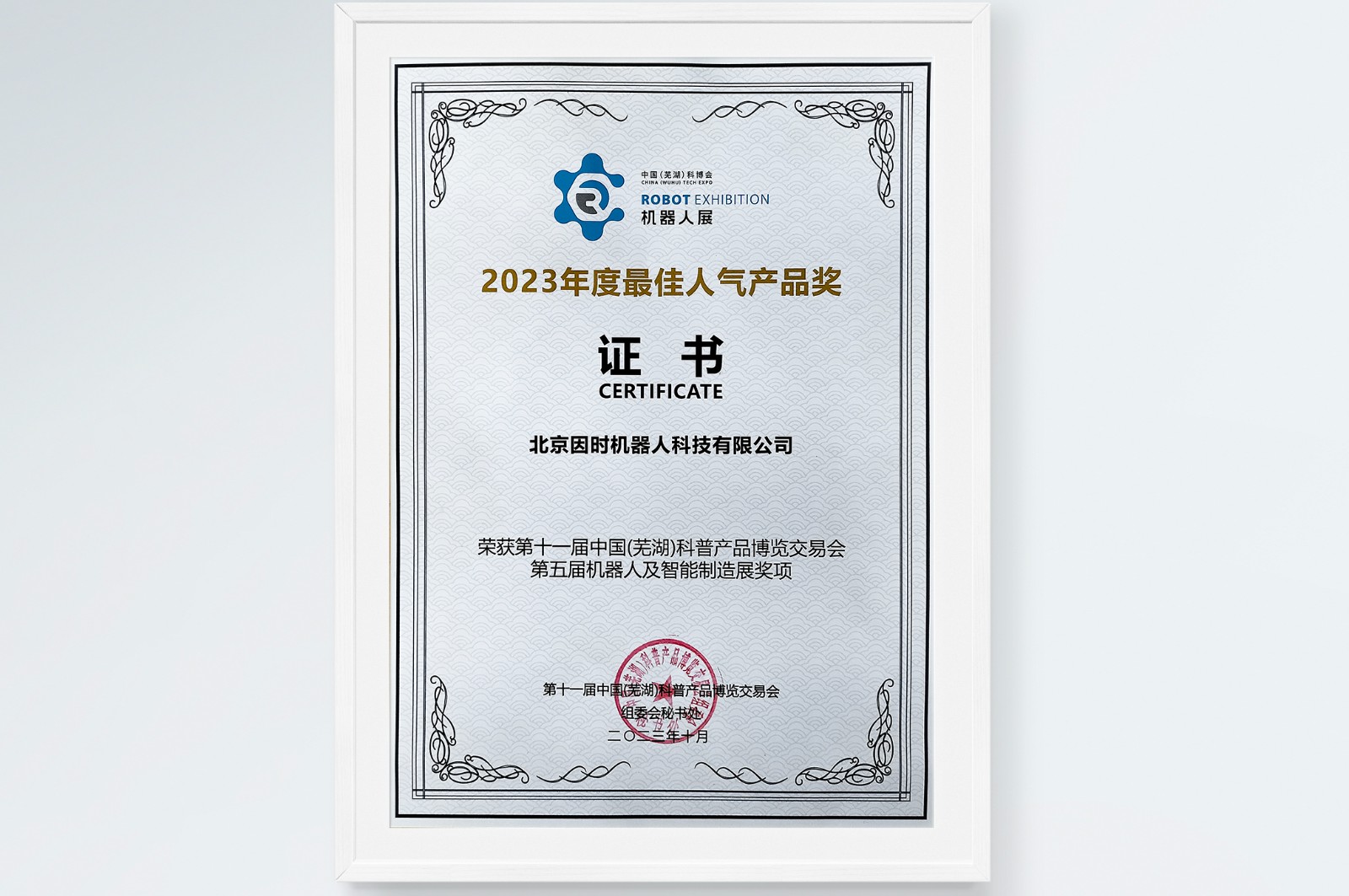 在本次演講中,從機器人需要什么樣的零部件?微型伺服電缸是什么?以及微型伺服電缸是如何促進機器人行業落地等方面進行了詳細介紹。在今年三月初特斯拉投資者日上,馬斯克說市面上找不到一款足夠小的、可用于人形機器人的actuator,他提到的actuator是指將傳統的機器人零部件集成到一起的一體化運動單元。人形機器人能否落地的兩個關鍵因素就是成本和能否量產,而核心零部件對這兩點的影響可謂是舉足輕重。從零部件的功耗、成本及空間比等因素考慮,一體化、小型化的機器人核心零部件已是大勢所趨,而微型伺服電缸就是這樣一款產品。為了推動機器人產業健康持續發展,本次科博會組織評選并頒發了機器人及智能制造展相關獎項,因時機器人憑借精巧的產品和過硬技術榮獲“最佳人氣產品獎”!